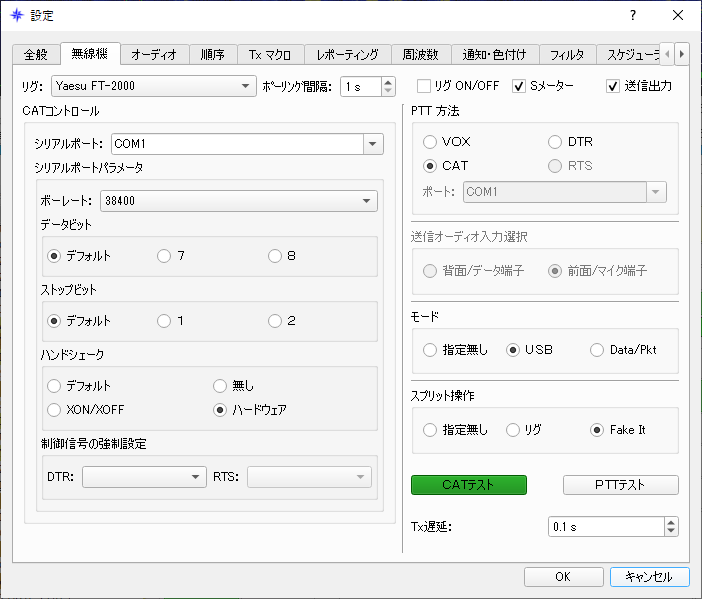 - 「QSOの自動的な記録を可能にする」をチェックしておくと、73を受け取った直後にJT_Linkerに連携されて便利。
