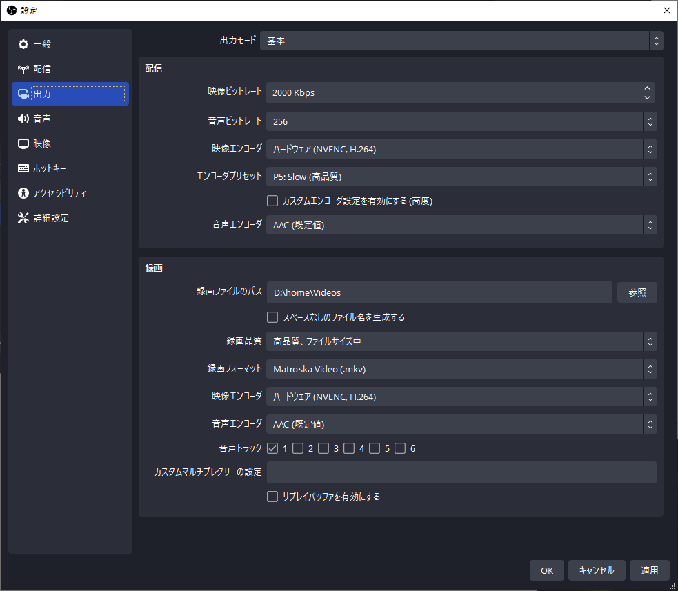 nVIDIA以外のグラボを使用している場合は使用環境に合わせて変更してください。