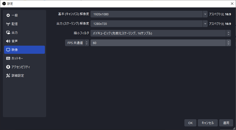 - FPS共通値の数字は60が基本ですが、30にすることで画質を良くできます