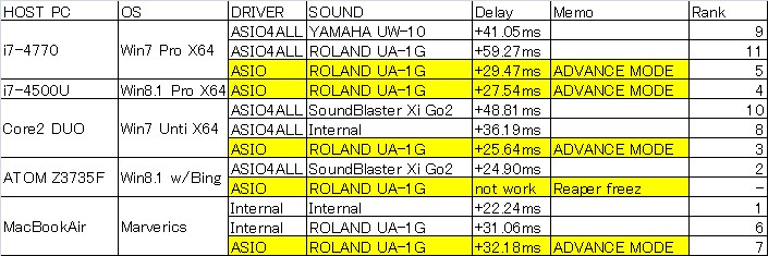 これからUSB-Audioデバイスを購入する場合は、ROLAND等のASIO対応と書いてある製品がお勧めです。