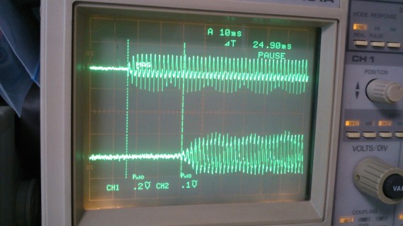 EWI-4000sのLINE OUTにプリセット01のSinging SAWを基準とし、MIDI接続したIFWで発音させた場合にどれくらい遅延が増えるかを測定しました。