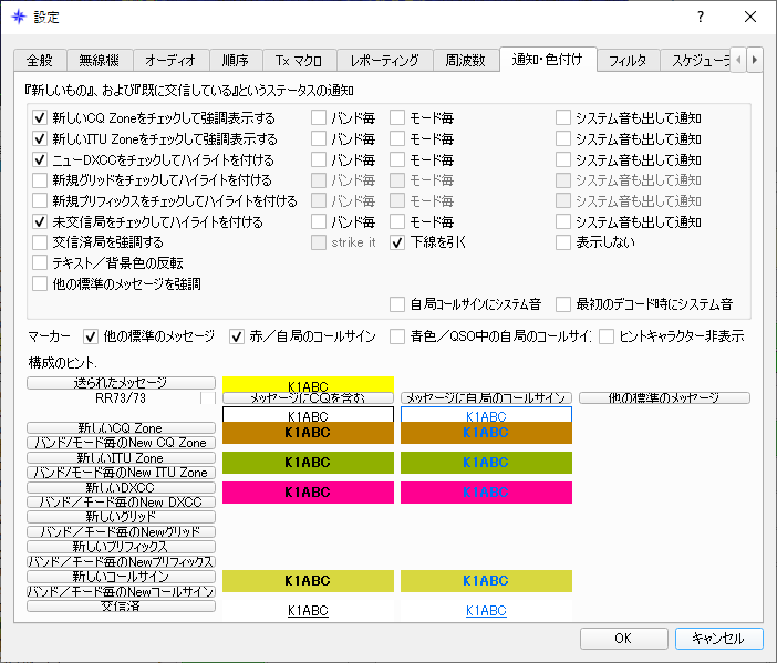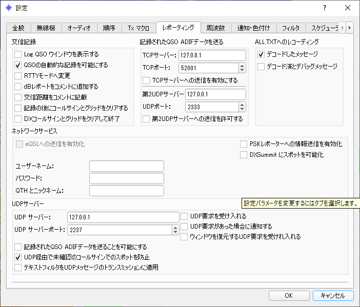 - 「QSOの自動的な記録を可能にする」をチェックしておくと、73を受け取った直後にJT_Linkerに連携されて便利。